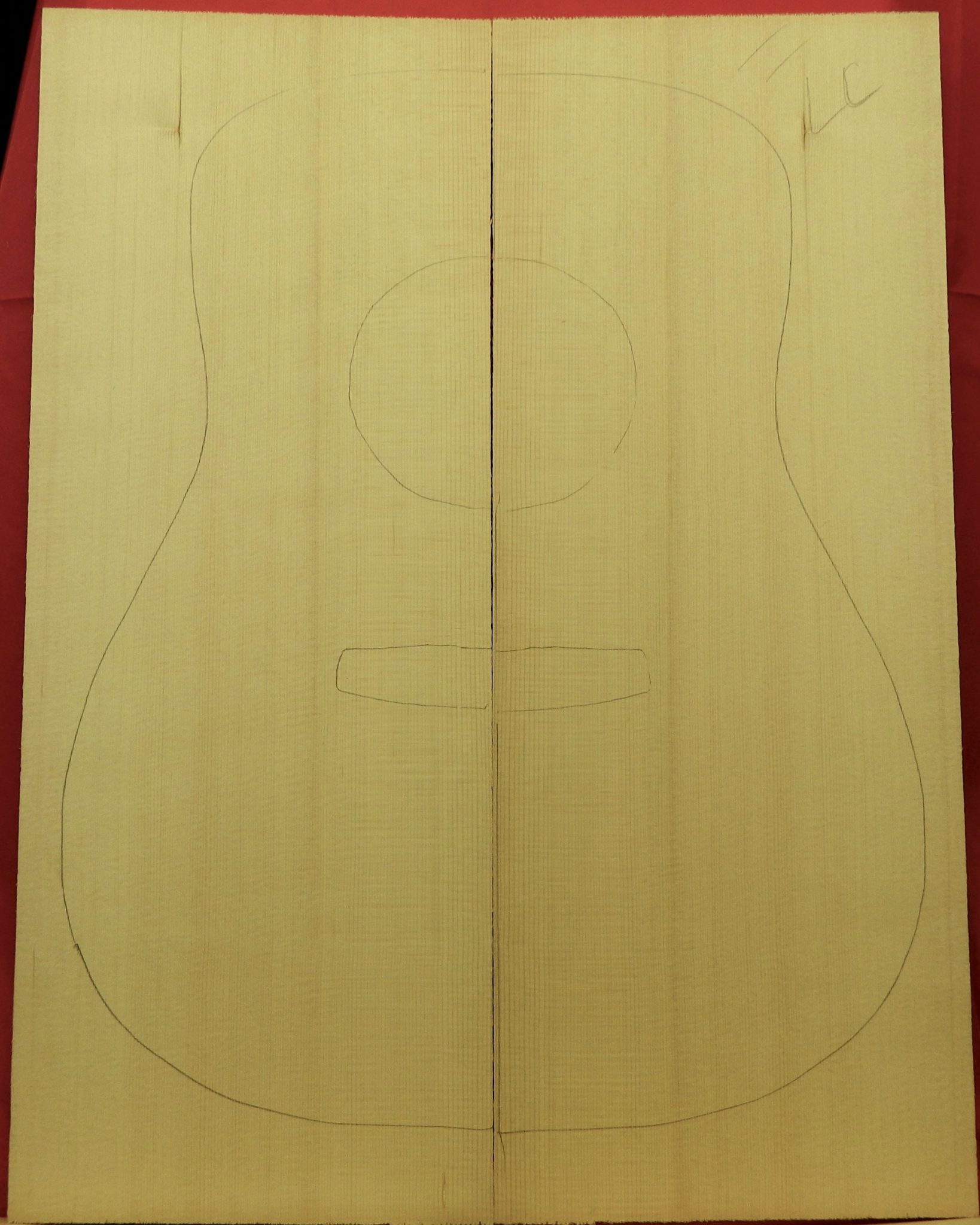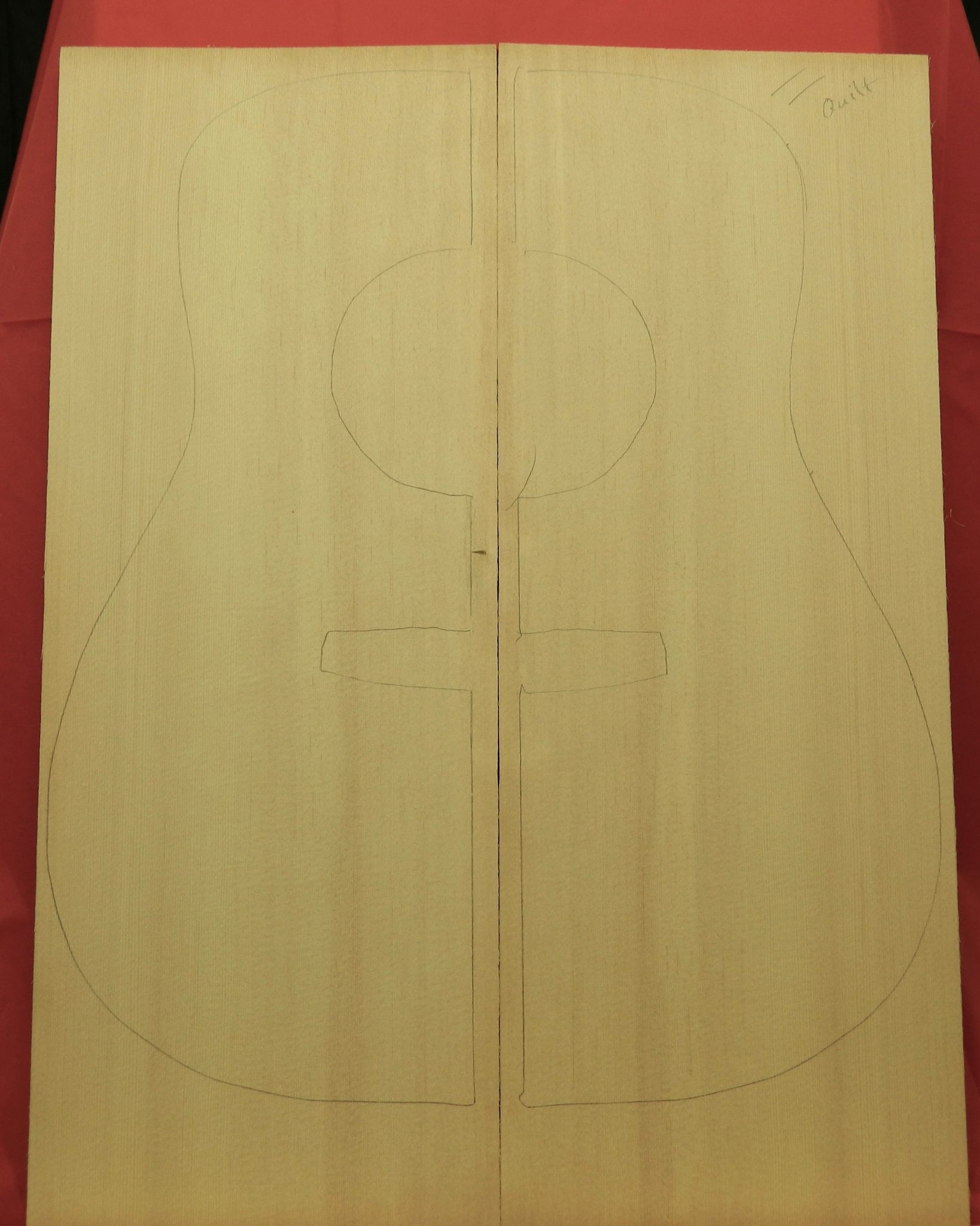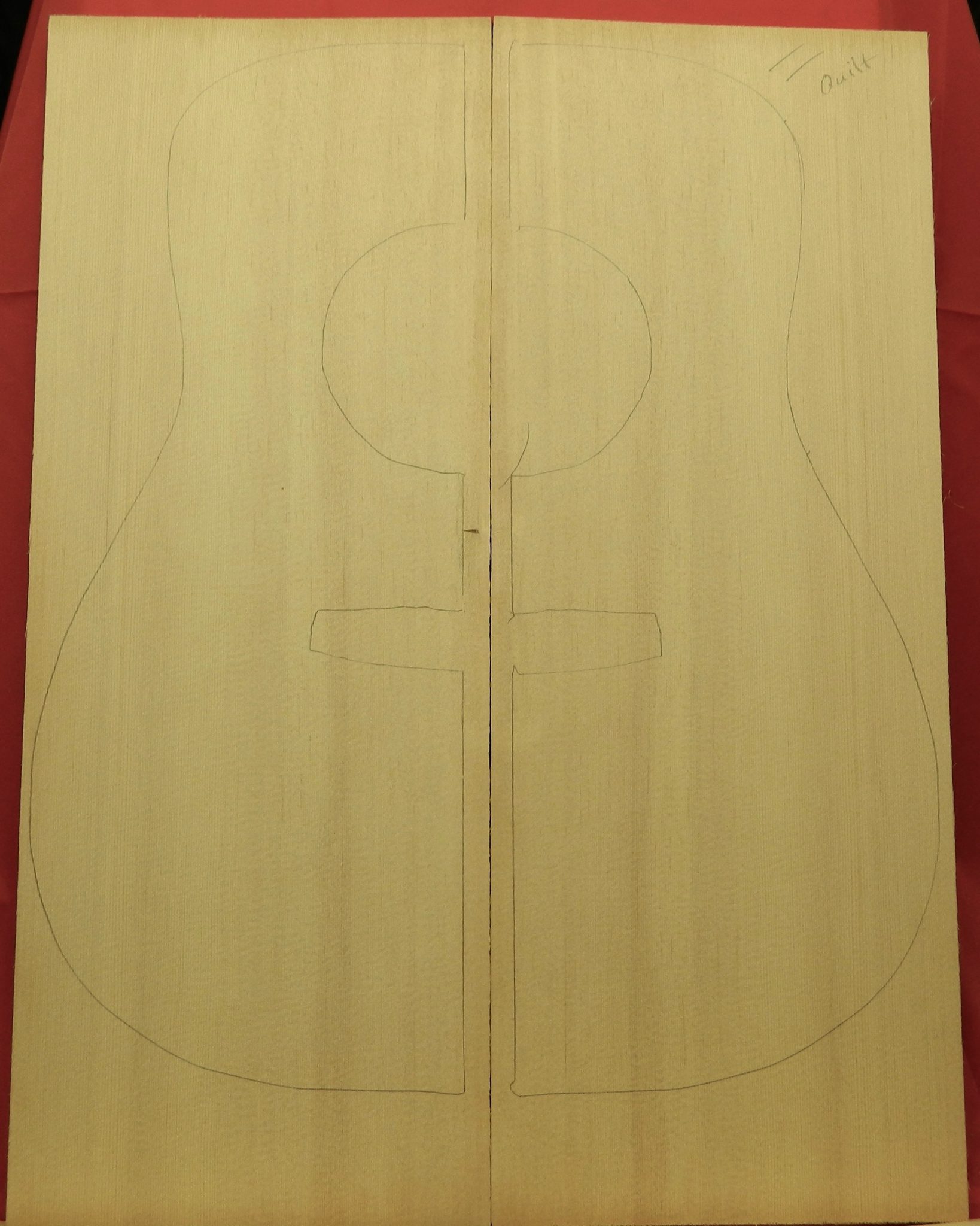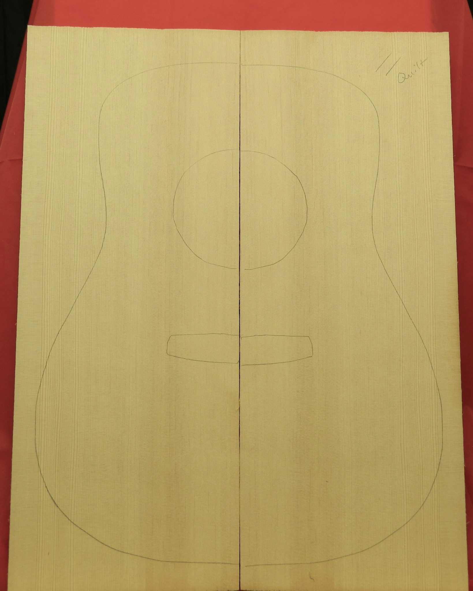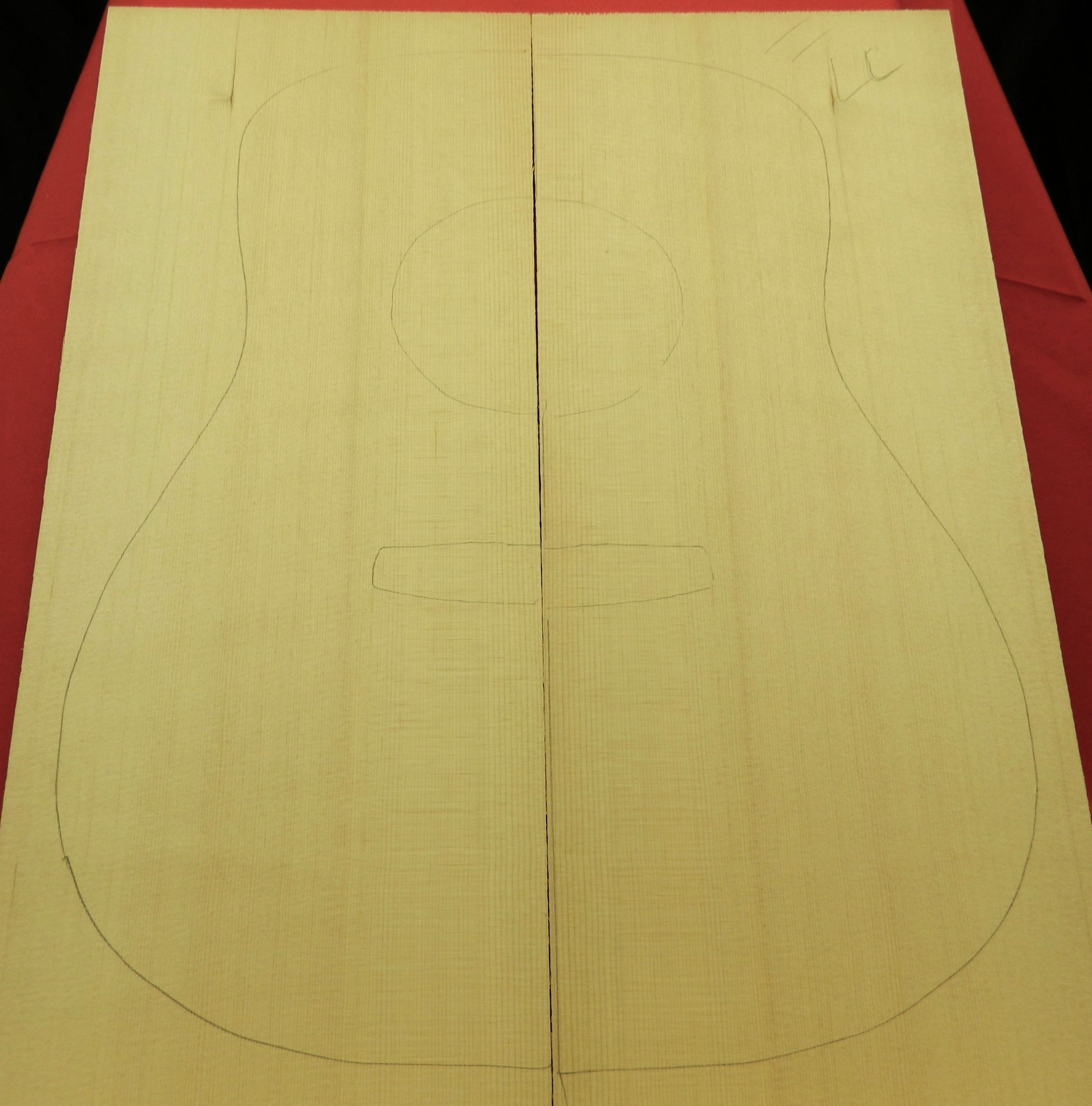 Light Quilt Sitka Spruce Dread. Light quilt comes from the same block and log and tree that the light curl is from. The difference is the orientation of the cut. The quilt figured boards are just off VG and cut slightly across the curly lumps to capture more of the figure. This cut won’t have the strong medularies, but are cut within the tolerances of stiffness for good soundboards. The quilt offers a different visual energy of a 3-D depth. The picture of the sanded board does not capture the visual beauty of depth.
