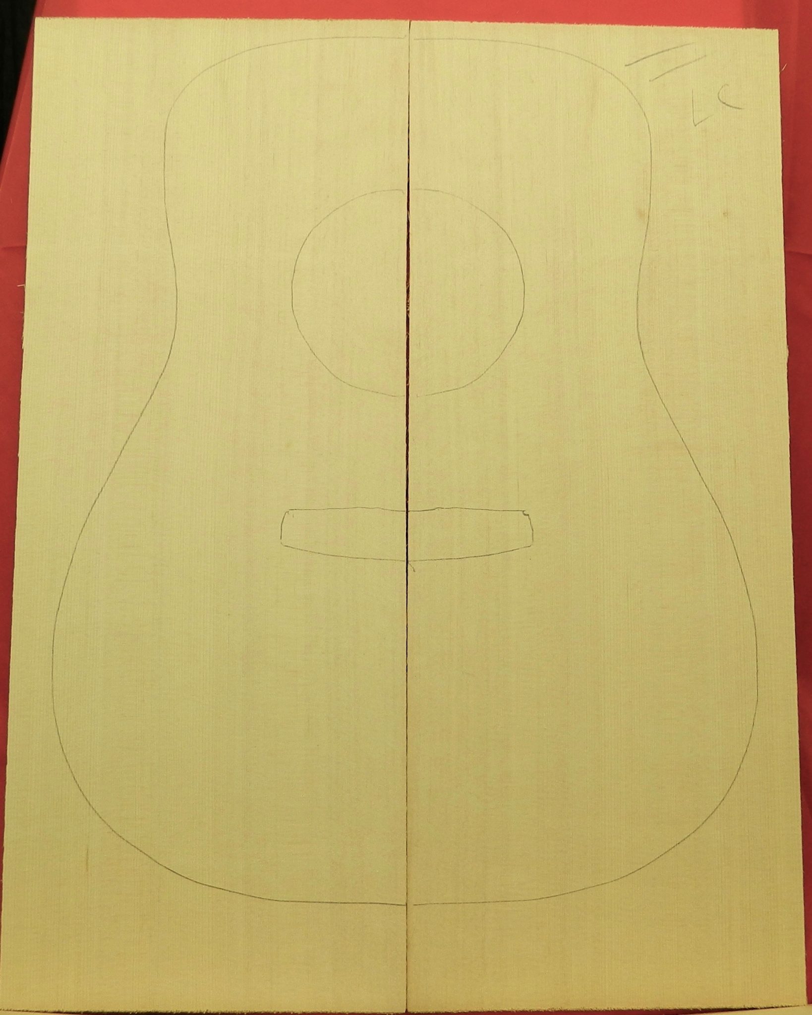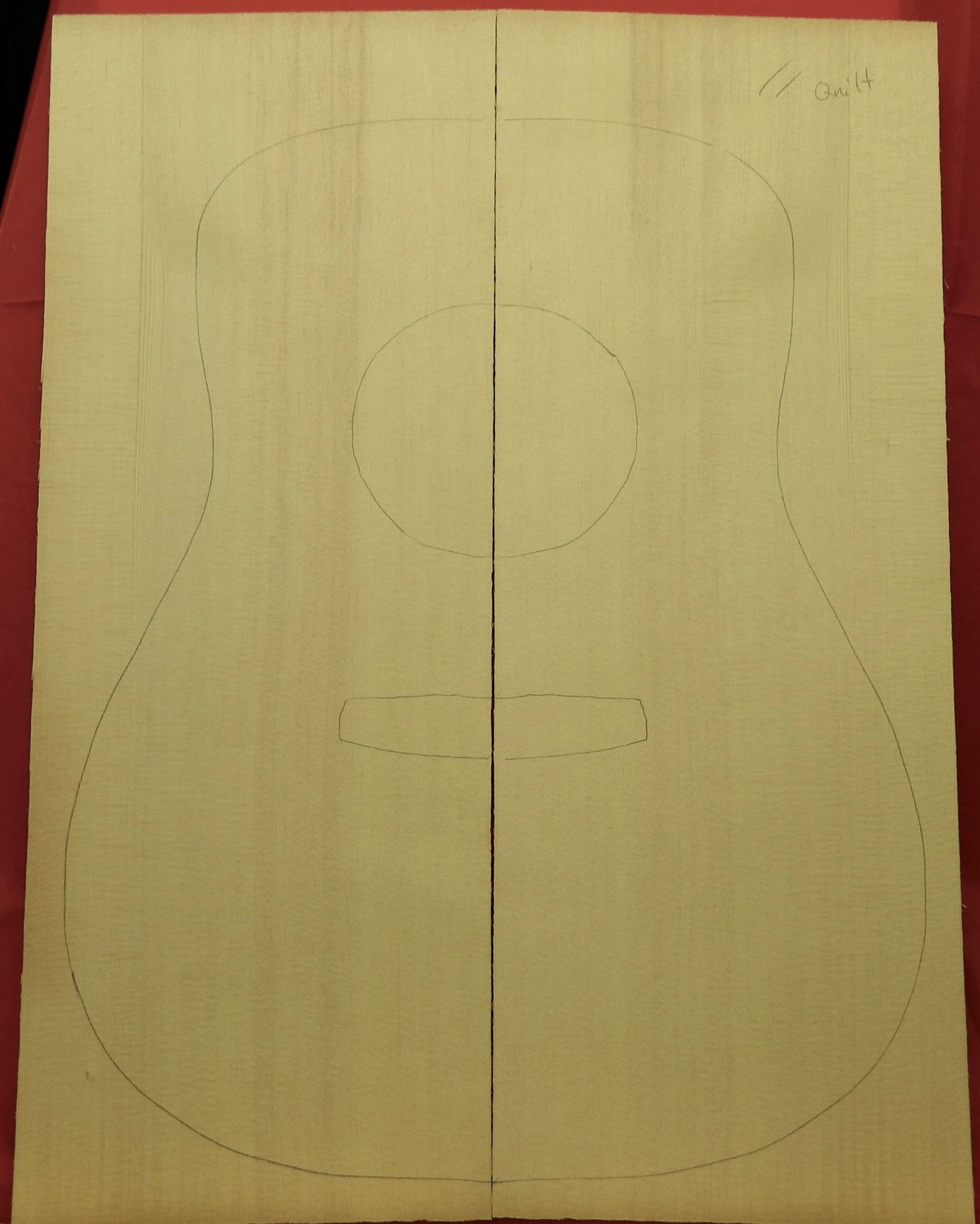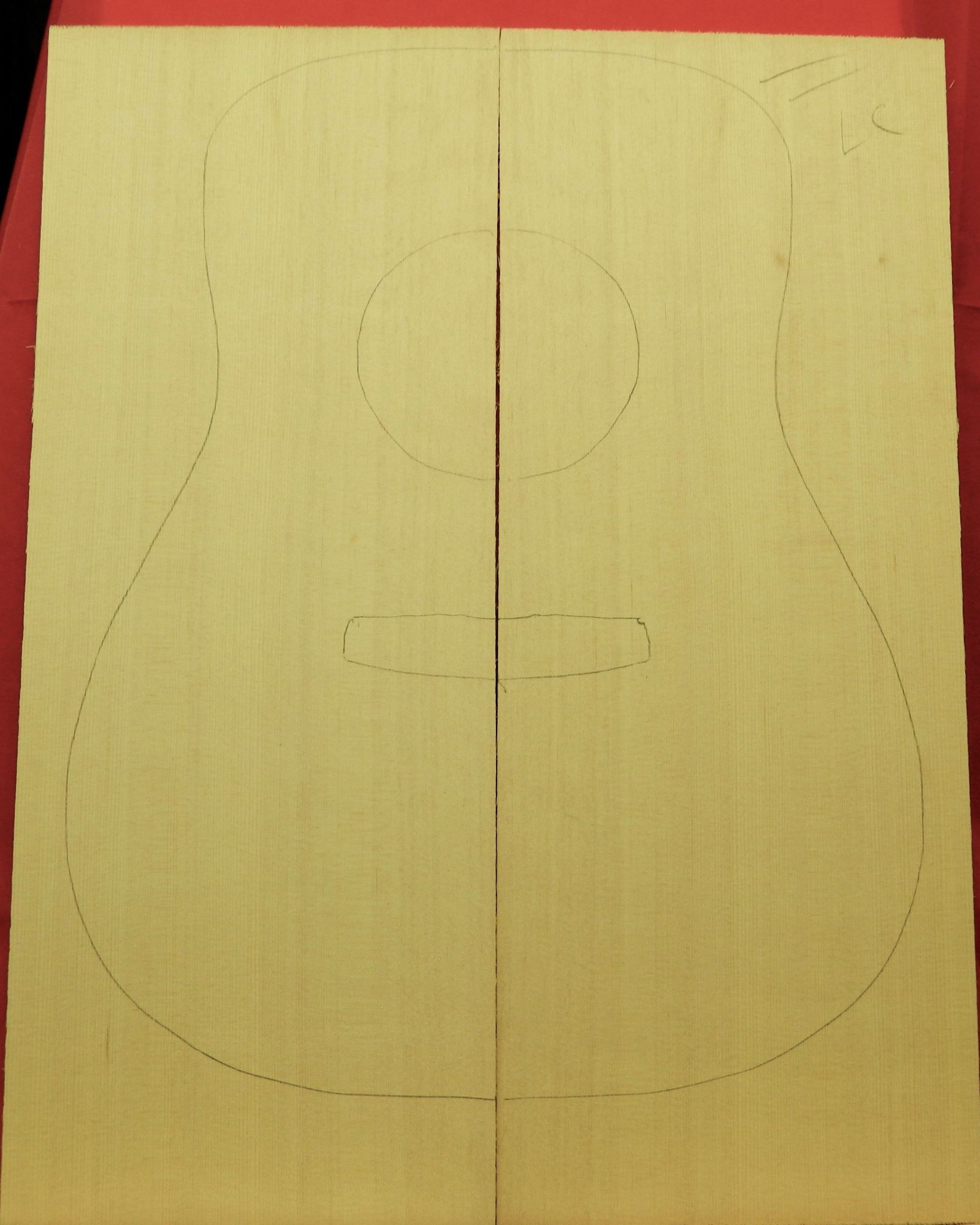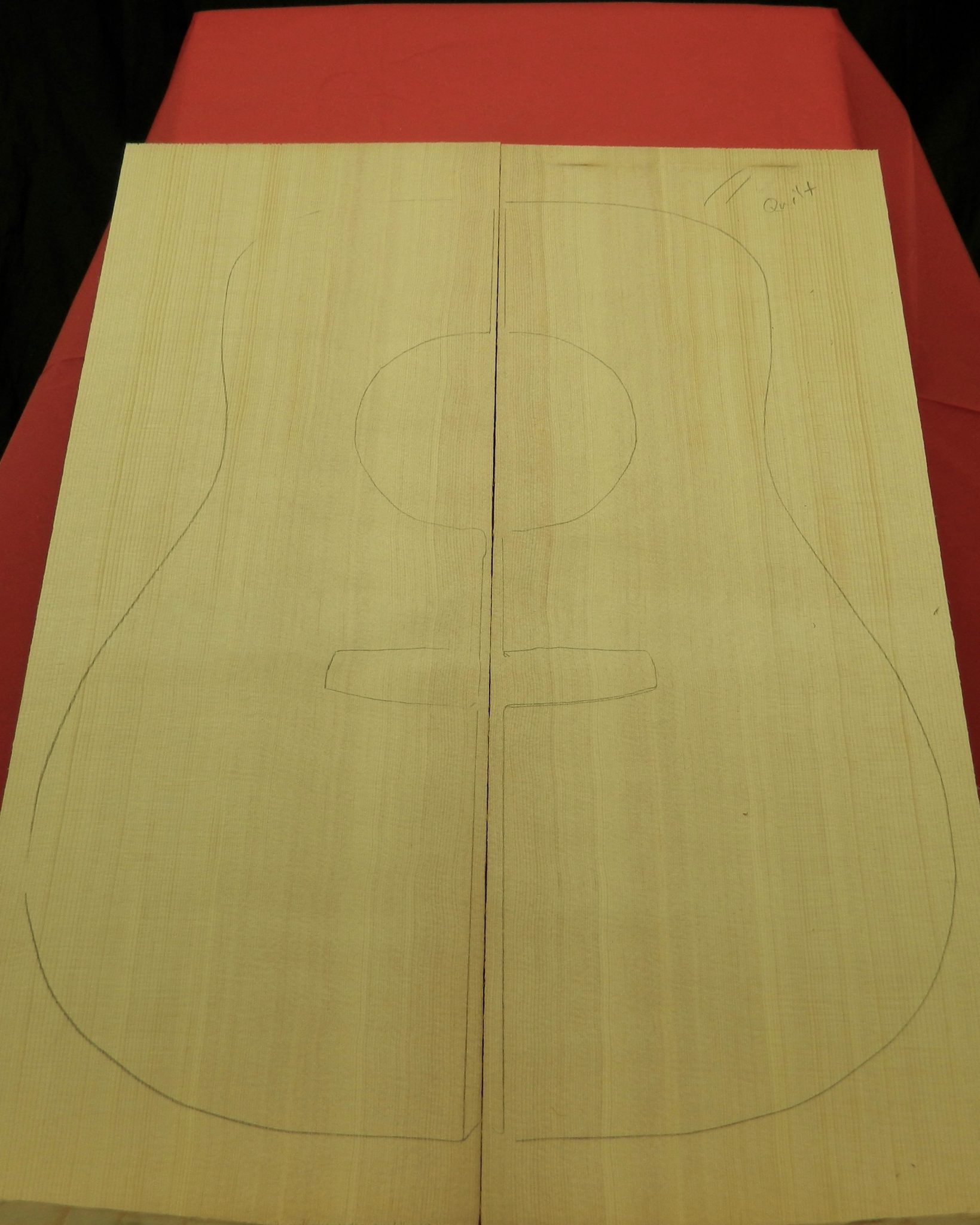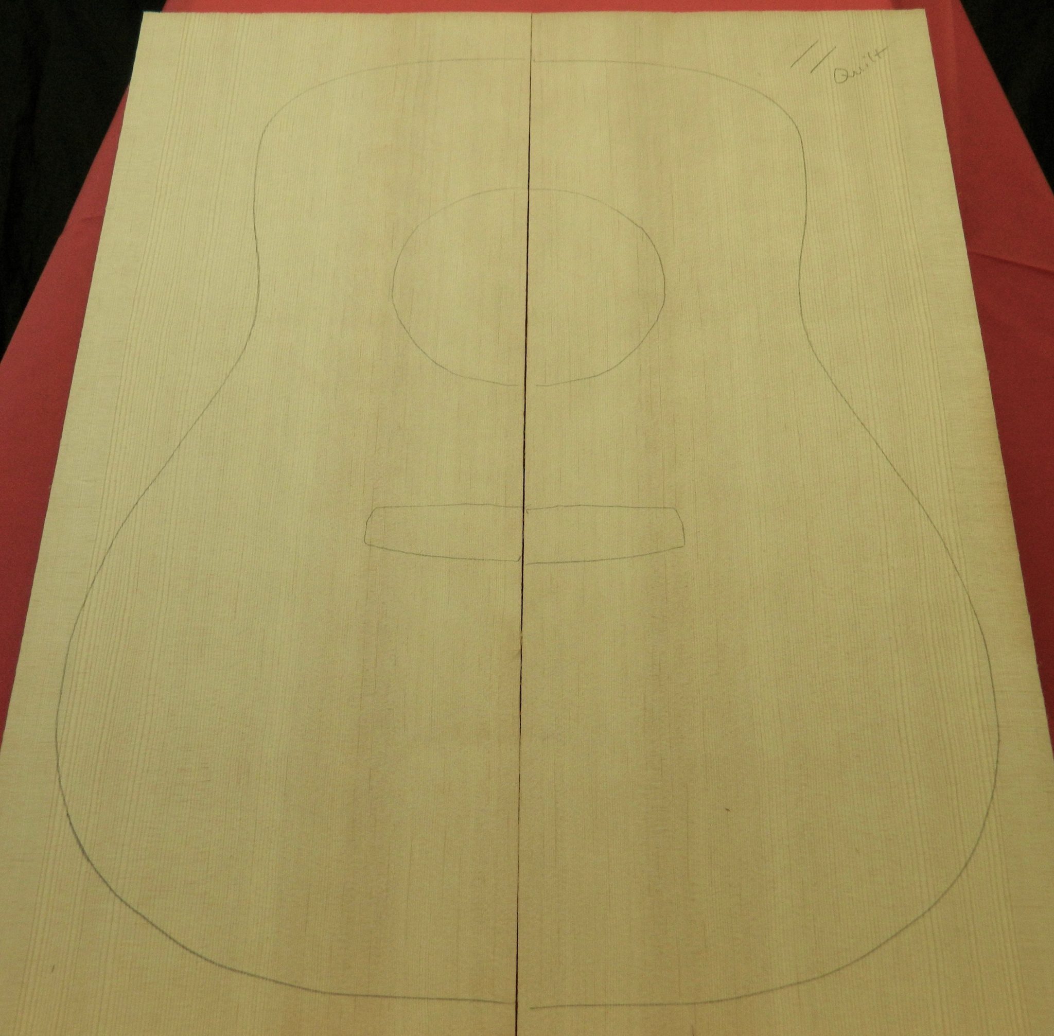 Light Quilt Sitka Spruce Dread. Light quilt comes from the same block and log and tree that the light curl is from. The difference is the orientation of the cut. The quilt figured boards are just off VG and cut slightly across the curly lumps to capture more of the figure. This cut won’t have the strong medularies, but are cut within the tolerances of stiffness for good soundboards. The quilt offers a different visual energy of a 3-D depth. The picture of the sanded board does not capture the visual beauty of depth.