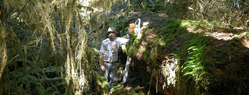 Alaska Specialty Woods has one primary source for all material acquisitions. Whether the wood comes from old log floats, old log bridges or from a wind-fell tree in the forest, all of it is from the beautiful and ancient Tongass National Forest (TNF). The Tongass is often referred to as the “crown jewel of the National Forest System”. Located in the Southeastern panhandle of Alaska, or the Alexander archipelago — made up of over one thousand islands — it covers over 17 million acres and is the largest national forest in the United States. The Tongass, a temperate rainforest, thrives in maritime climate of Southeast Alaska because of the high humidity throughout the year and sufficient sunlight during the spring and summer.