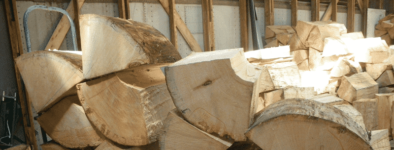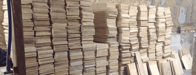 The correction wedges are set aside to be re-sawn into various carved-top and small body flat-top instruments or brace stock. What does not make product we use as firewood to heat our processing facility. This is just the beginning. It is not until the secondary breakdown process that we see what a tree might truly yield.